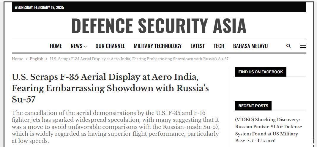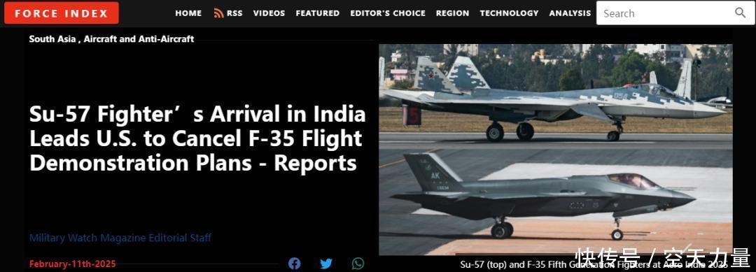 笔者认真查询了相关资料发现,原来在俄罗斯苏-57抵达航展现场之后,美国方面就宣布,取消了F-35和F-16战斗机的飞行表演计划,直接转入地面静态展示——社交媒体上关于F-35在印度航展上的飞行视频,全部来自于该机此前的适应性飞行……